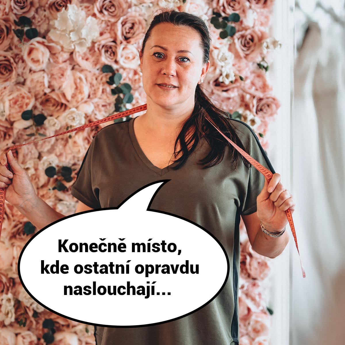 Dále pracovní náplň tvoří příprava šatů k odeslání (žehlení, balení, kontrola) a také čištění šatů.